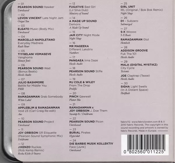 | 11 | Joy Orbison: GR Etiquette (Pearson Sound Symphonic Mix) | 2:34 min | |