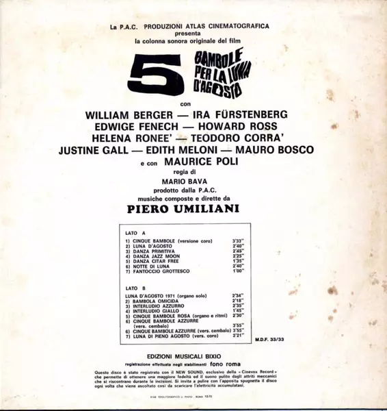 | Titel | 5 Bambole Per La Luna D'agosto - O.s.t. |