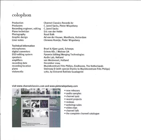 | Meer informatie | SACD Jewelcase — Channel Classics Stereo |