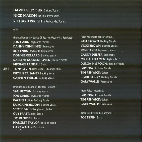 | Artiest | Pink Floyd |