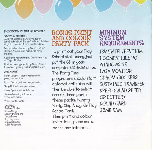 | Arranged By Peter Dasent | Written By [It's My Birthday Today] Baysing, T. Dasent | Written-By [Der Glumph] Traditional | Written-By [Happy Birthday] Mildred J. Hill, Patty Smith Hill | Written-By [Humpty Dumpty] Traditional | Written-By [Kookaburra Sits in The Old Gum Tree] Marion Sinclair | Written-By [Shoo Fly] Traditional | |||