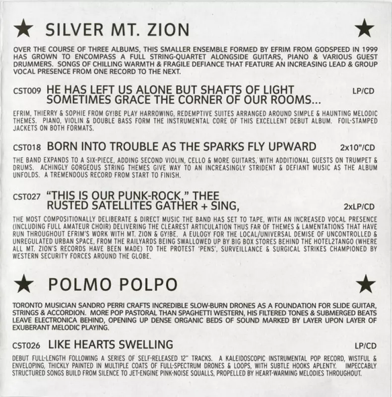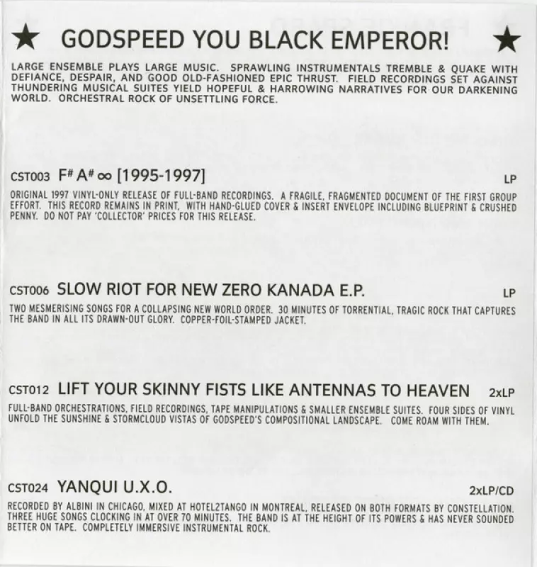 | Meer informatie | 2003 Original Vinyl — Constellation (Canada pressing) |
