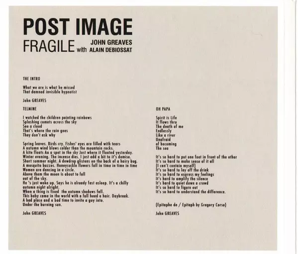 | Artiest | John Greaves | Post Image | Alain Debiossat |