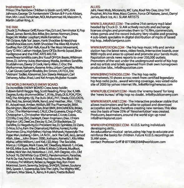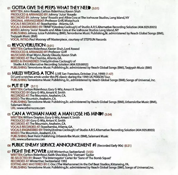 Bass, Guitar 7th Octave, Kavon Shah, Khari Wynn, Randy Glaude | Mixed By, Engineer Andrea Coclough | Producer, Arranged By Professor Griff | Written-By Carlton Ridenhour, Kavon Shah, Lord Aswod