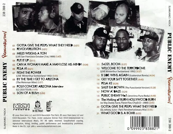 Public Enemy: Revolverlution versie op CD in standaard editie. Deze specifieke uitgave werd uitgebracht in Europa bij uitgeverij Koch Records in samenwerking met Slam Jamz en In The Paint op 29. oktober 2002. Album kan worden geclassificeerd als genre Hip Hop.