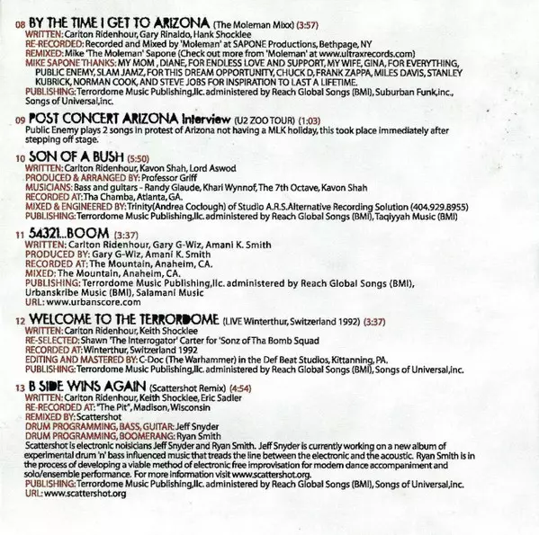 Drum Programming, Bass, Guitar Jeff Snyder | Drum Programming, Other [Boomerang] Ryan Smith (4) | Remix Scattershot | Written-By Carlton Ridenhour, Eric Sadler, Keith Shocklee