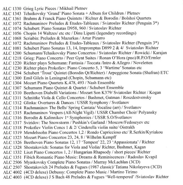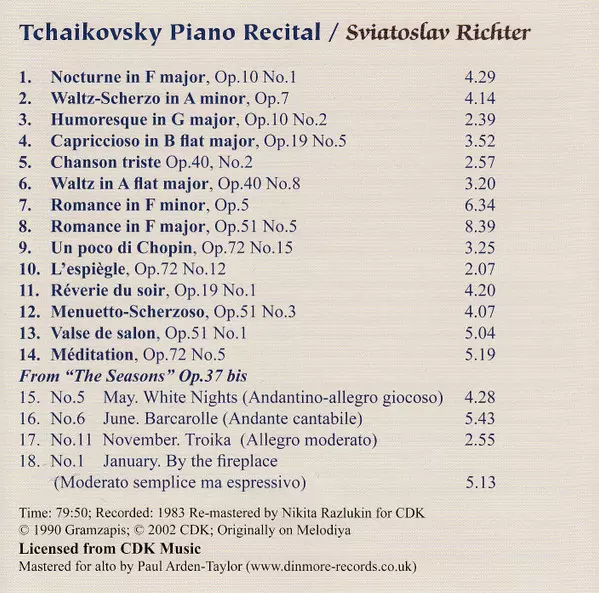 | Artiest | Pyotr Ilyich Tchaikovsky | Sviatoslav Richter |