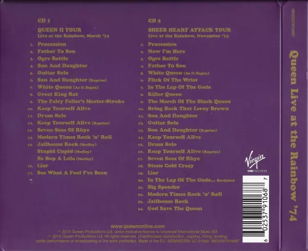 Queen: Live At The Rainbow '74 DLX | DIGI versie op 2CD in deluxe digipack editie. Deze specifieke uitgave werd uitgebracht in Europa bij uitgeverij Virgin EMI Records op 16. september 2014.