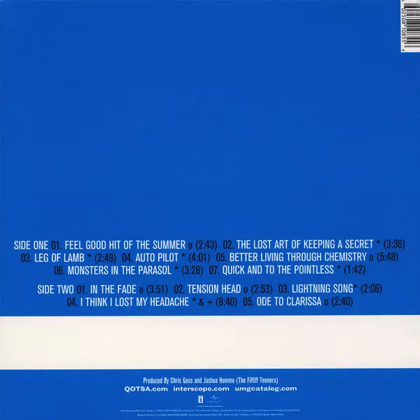 Backing Vocals Peter Stahl | Baritone Saxophone Scott Mayo | Drums Nick Lucero | Electric Piano David Catching | Piano [Noise Piano] Chris Goss | Songwriter, Bass, Backing Vocals Nick Oliveri | Songwriter, Lead Vocals, Guitar Josh Homme | Vibraphone [Vibes] Barrett Martin