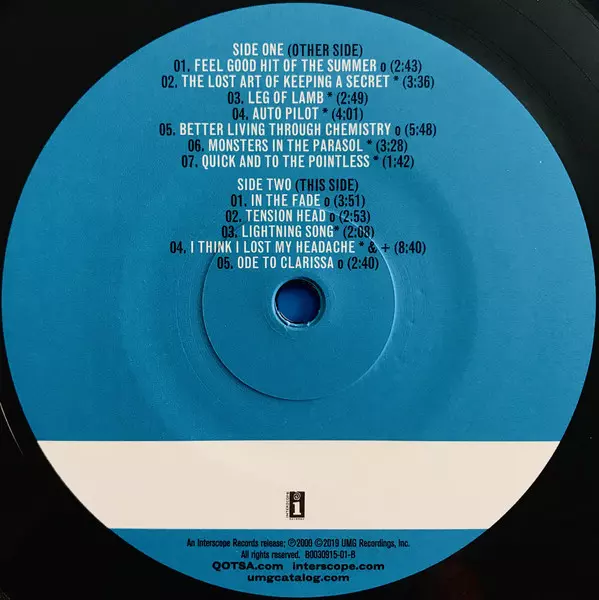 'Rated R' on vinyl Queens Of The Stone Age are re-releasing their first four albums on vinyl through Interscope Records in 2019. 'Rated R' and 'Songs For The Deaf' will be released on November 22, while 'Lullabies To Paralyze' and 'Era Vulgaris' will be released on December 20. "Rated R" is the second album from the Palm Desert, California-based stoner rock icons, and follows their debut and is also their first album on a major label. Originally released on June 6, 2000, its best known tracks include "The Lost Art Of Keeping A Secret" and "Feel Good Hit Of The Summer". This new edition LP is the first vinyl release of "Rated R" in the US and the first vinyl release in the world to include the original blue album artwork. The album also includes the international bonus track "Ode To Clarissa". An absolute must-have for all Queens Of The Stone Age fans: the vinyl reissue of "Rated R".