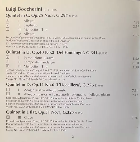 | Artiest | Luigi Boccherini | Quintetto Boccherini |