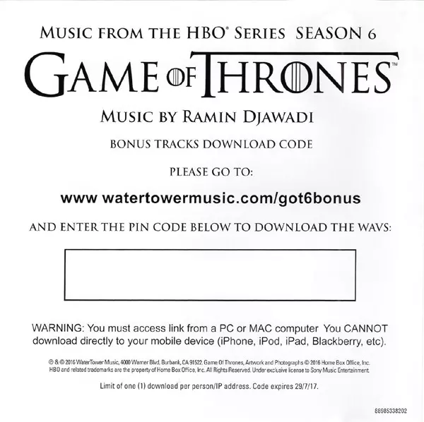 | Titel | Game Of Thrones (Music From The HBO Series) Season 6 |
