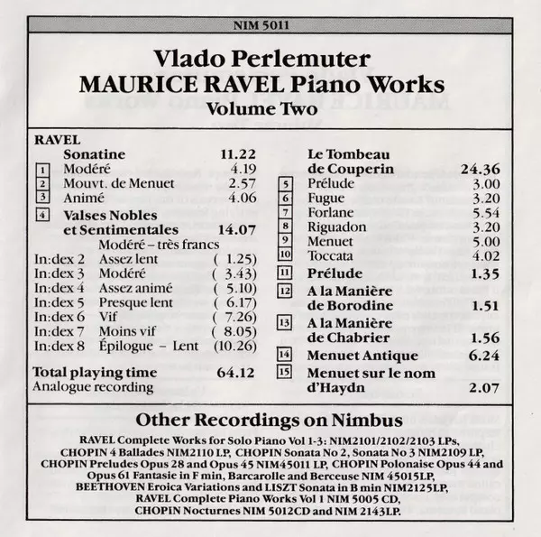 | Artiest | Maurice Ravel | Vlado Perlemuter |