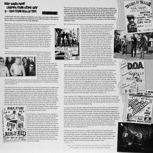 Really Red was hardcore punk band from Houston, TX who existed from 1978 until 1985. The Really Red line up consisted of John Paul Williams on bass guitar, Ronnie "U-Ron" Bond vocalist/lyricist, Bob Weber on drums and Kelly Younger on guitar. Under occasional variations of their na...