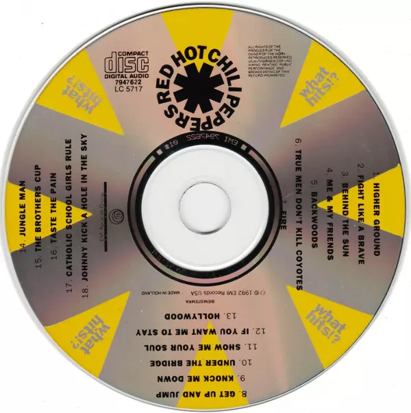 Red Hot Chili Peppers : What Hits!? is a compilation album released by the Red Hot Chili Peppers in 1992. The album contains fourteen of the band's most popular songs from their first four albums. What Hits!?? was the group's first compilation album and was released as a way to introduce new fans to the group's music. The album was a commercial ...