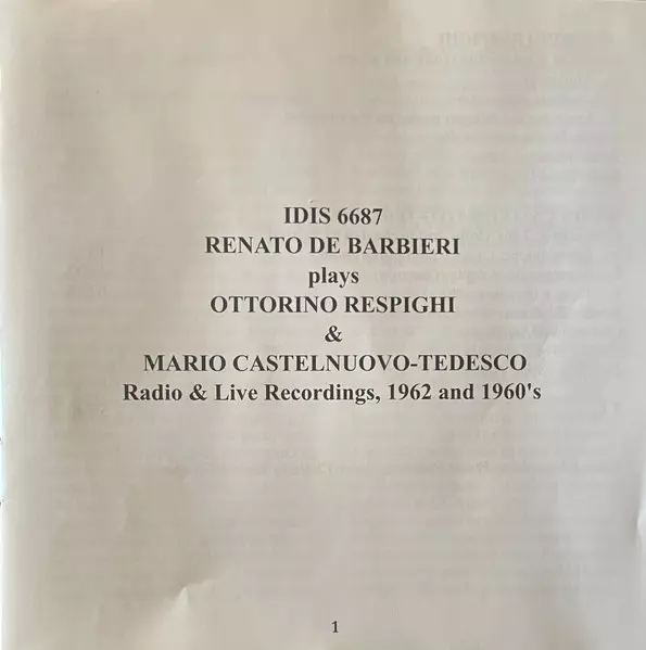 | Artiest | Ottorino Respighi | Mario Castelnuovo Tedesco | Renato De Barbieri |