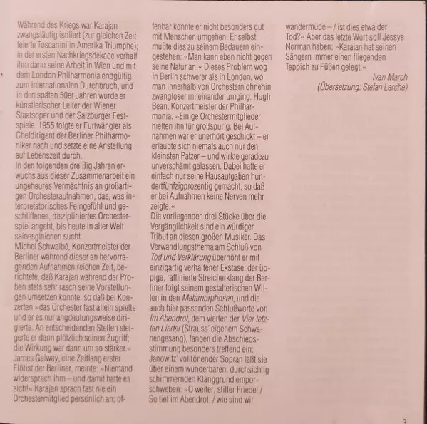 | Titel | Vier Letzte Lieder · Four Last Songs / Tod Und Verklärung · Metamorphosen |