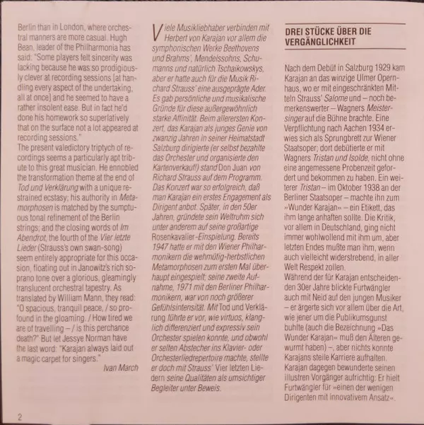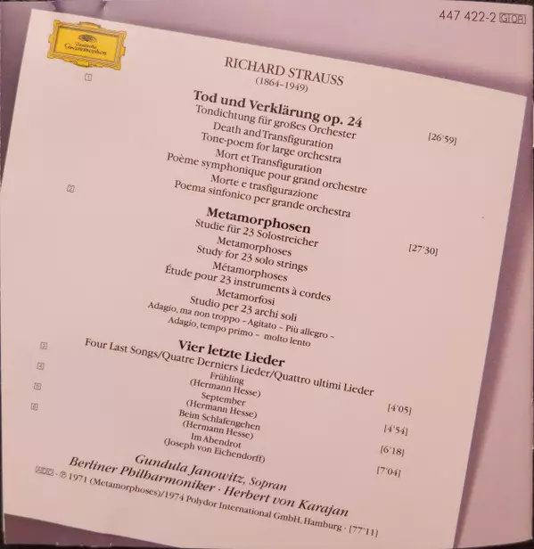 | Artiest | Herbert von Karajan | Berliner Philharmoniker | Richard Strauss | Gundula Janowitz |