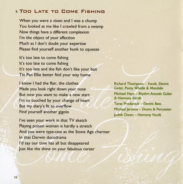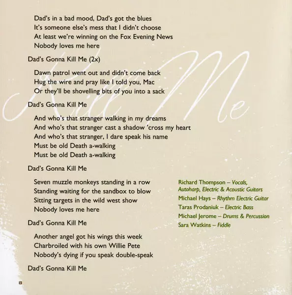 Acoustic Guitar [Rhythm], Harmony Vocals Michael Hays | Drums, Percussion Michael Jerome | Electric Bass Taras Prodaniuk | Harmony Vocals Judith Owen | Vocals, Electric Guitar, Tin Whistle, Mandolin Richard Thompson