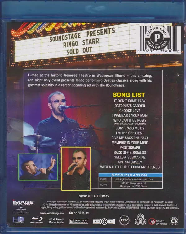 Live concert from the Genesee Theatre in Waukegan, Illinois, USA - a great one-night-only concert featuring Ringo playing five Beatles songs along with his greatest hits.