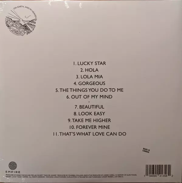 Robin Thicke: On Earth, And In Heaven CLR versie op vinyl LP in gekleurde editie. Deze specifieke uitgave werd uitgebracht in VS bij uitgeverij Lucky Music (4) in samenwerking met Empire op 30. juli 2021. Album valt binnen het genre Funk / Soul, Soul en Contemporary R&B. Clear Vinyl.