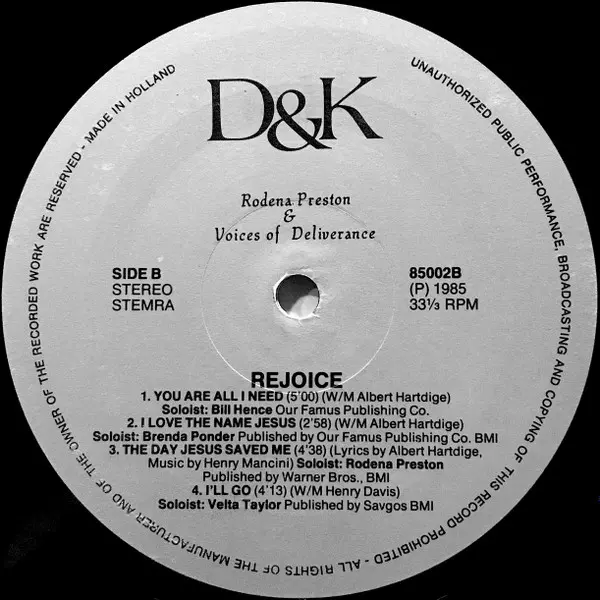 | Artiest | Rodena Preston & The Voices Of Deliverance |