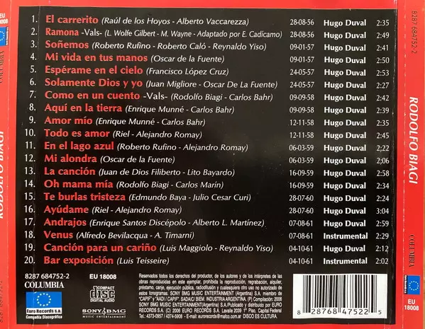 | Titel | Rodolfo Biagi Con Hugo Duval 1956 / 1961 |