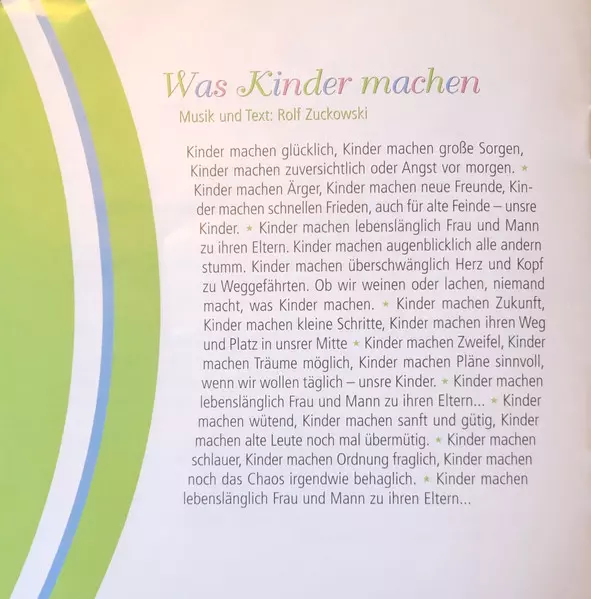 | 7 | Rolf Zuckowski, Anuschka Zuckowski: Dein Herz für Kinder | 3:21 min | |