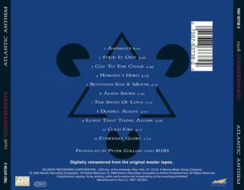 Counterparts is an album by Canadian rock band Rush , released in 1993. It was the band's eighteenth studio album. The album was recorded at Le Studio in Morin-Heights, Quebec and mixed at McClear Place in Toronto. The album reached number 3 on the Billboard 200 chart and was certified platinum by the Recording Industry Association of America. T...