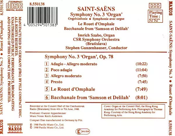 | Titel | Symphony No. 3 'Organ', Op. 78 • Le Rouet D'Omphale • Bacchanale From 'Samson Et Delilah' |