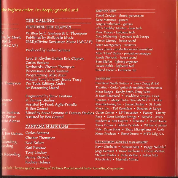 | Bass Benny Rietveld | Congas Raul Rekow | Drums Gregg Bissonette | Engineer Glen Kolotkin, Jeff Poe, Jim Gaines, John Karpowich, Steve Fontano | Keyboards, Programmed By Chester Thompson (2), KC Porter | Lead Guitar Carlos Santana | Mixed By Jeff Poe | Producer KC Porter | Rhythm Guitar, Percussion Raul Pacheco | Timbales Karl Perazzo | Written-By Carlos Santana, KC Porter | |||