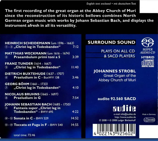 | Artiest | Johann Sebastian Bach | Dieterich Buxtehude | Matthias Weckmann | Georg Böhm | Heinrich Scheidemann | Franz Tunder | Nikolaus Bruhns | Johannes Strobl |