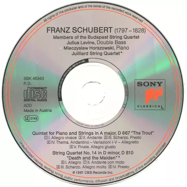 | Titel | Forellen-Quintett / Der Tod Und Das Mädchen |