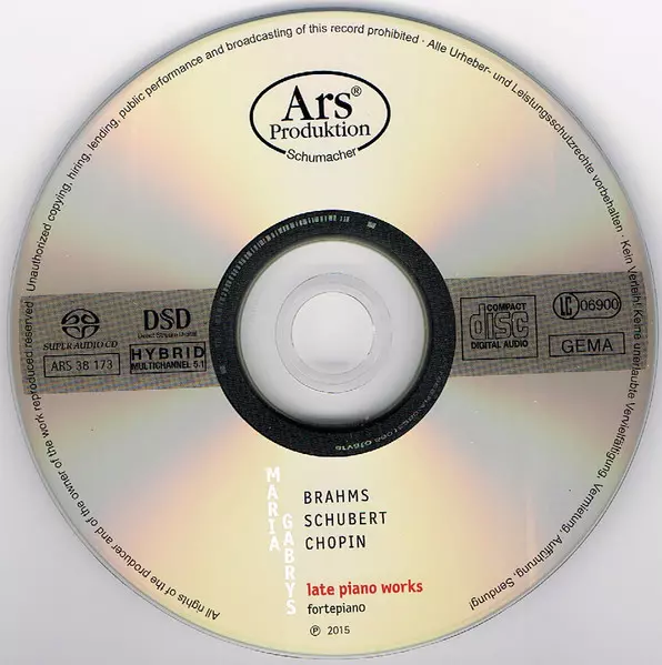 | Artiest | Frédéric Chopin | Johannes Brahms | Franz Schubert | Maria Gabrys |