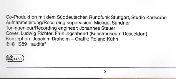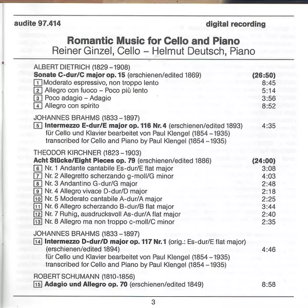 | Artiest | Johannes Brahms | Robert Schumann | Helmut Deutsch | Albert Dietrich | Theodor Kirchner | Reiner Ginzel |