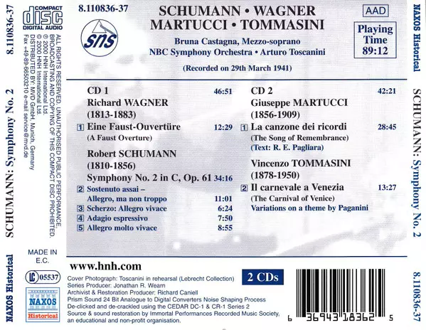 | Titel | Symphony No. 2 / A Faust Overture / Song Of Remembrance / Carnival Of Venice (Recorded On March 29, 1941) |