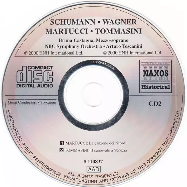 | Artiest | Robert Schumann | Richard Wagner | Arturo Toscanini | NBC Symphony Orchestra | Giuseppe Martucci | Bruna Castagna | Vincenzo Tommasini |