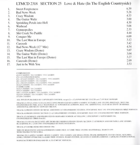 | Meer informatie | 2003 Remaster (In The English Countryside) LTM |
