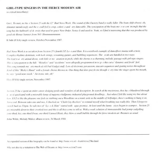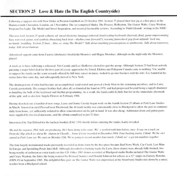 | Artiest | Section 25 |