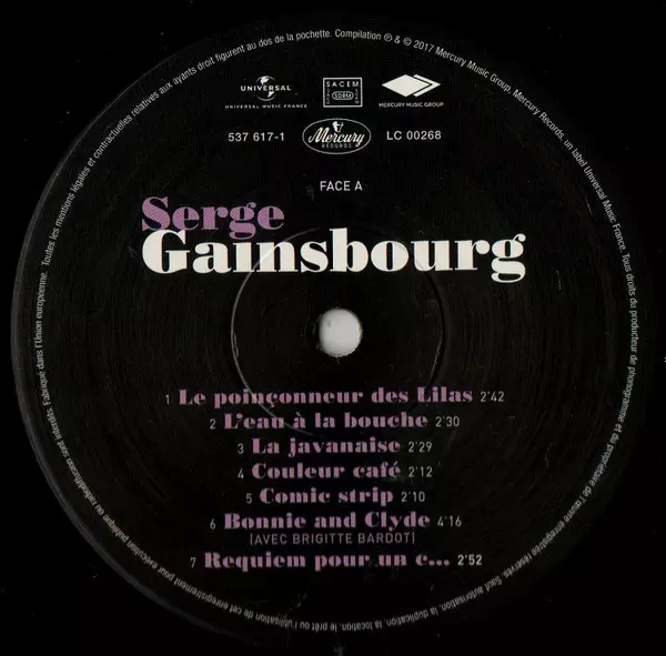 | A6 | Serge Gainsbourg, Brigitte Bardot: Bonnie And Clyde | 4:16 min | |