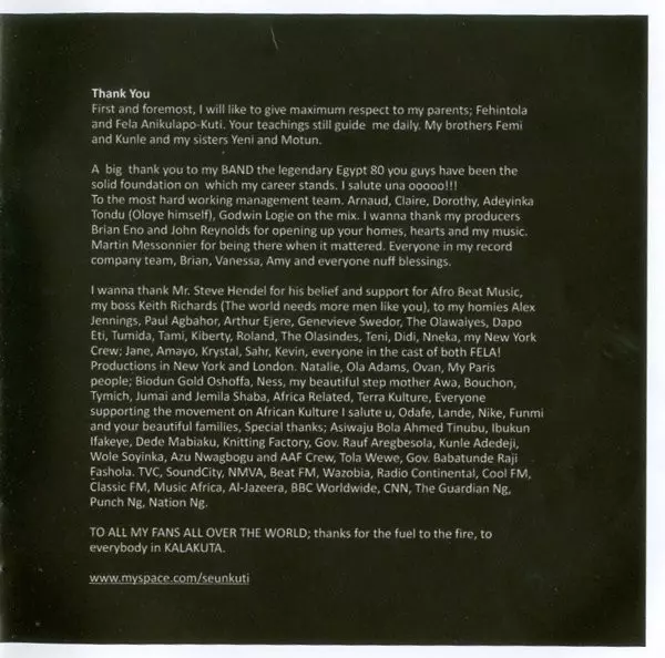 | Artiest | Seun Kuti + Egypt 80 |