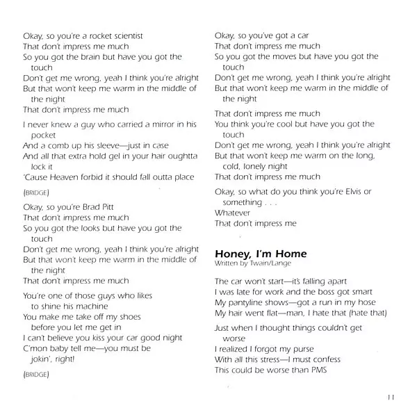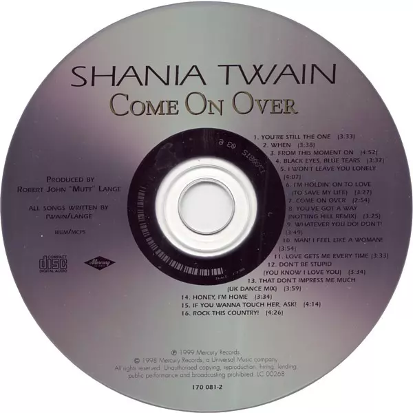 Shania Twain's album Come On Over, released in 1997, was a huge success. The album sold more than 40 million copies and spawned several hit singles, including "Man! I Feel Like a Woman!", "That Don't Impress Me Much" and "You're Still the One". Twain's country-pop crossover sound appealed to a wide audience, and the album helped establish her as...