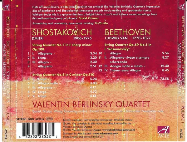 | Artiest | Ludwig van Beethoven | Dmitri Shostakovich | Valentin Berlinsky Quartet |