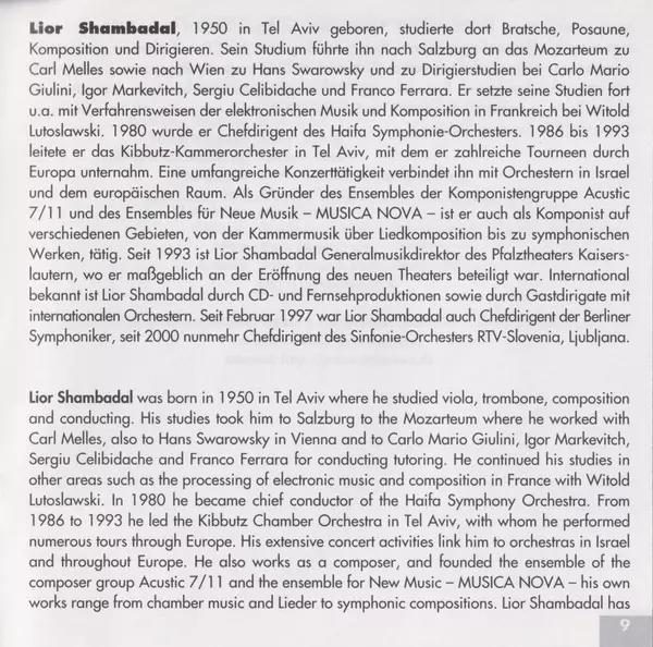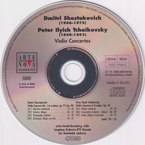 | Artiest | Pyotr Ilyich Tchaikovsky | Dmitri Shostakovich | Lior Shambadal | Latica Honda-Rosenberg | Simfonični Orkester RTV Slovenija |