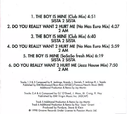 | Titel | The Boy Is Mine / Do You Really Want To Hurt Me |