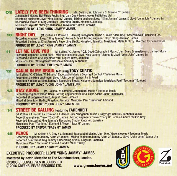 Engineer [Mixing] Lloyd "John John" James, Lloyd James (2) | Engineer [Recording], Producer Lloyd James (2) | Musician Clevie Browne, Wycliffe Johnson | Written-By Clevie Browne, Miguel Orlando Collins, Trevor 'Baby G' James, Wycliffe Johnson