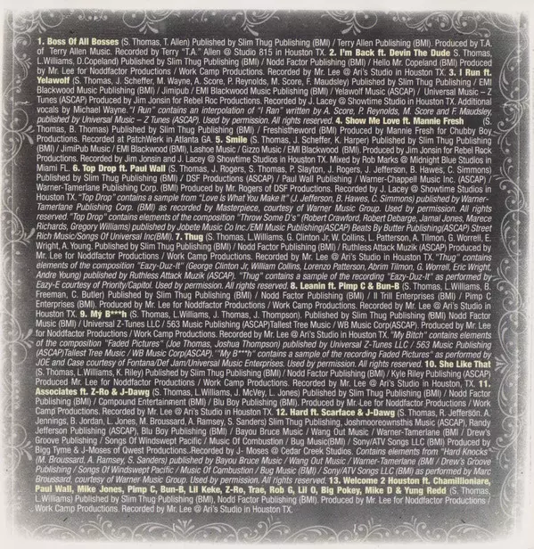 Featuring Big Pokey, Bun B, Chamillionaire, Lil' Keke, Lil' O, Mike D (6), Mike Jones (2), Paul Wall, Pimp C, Rob G., Trae, Yung Redd, Z-Ro