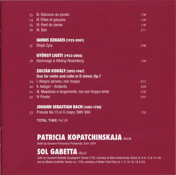| Artiest | Sol Gabetta | Patricia Kopatchinskaja |