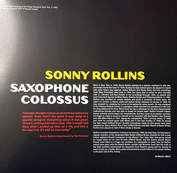 With the saxophone colossus, Sonny Rollins eventually earned great recognition as a central figure in the jazz world. Bis zu dieser Veröffentlichung hatte die Musikkritik Rollins nicht ernst genommen, während seine Kollegen bereits wussten, dass er zu den einflussreichen neuen Kräften der Jazz-Szene gehört. Saxophone Colossus aus dem Jahr 1956 i...