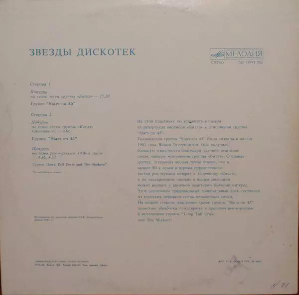 | A | Stars On 45: Попурри На Темы Песен Группы "Битлз" | 15:30 min | |